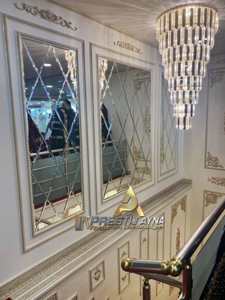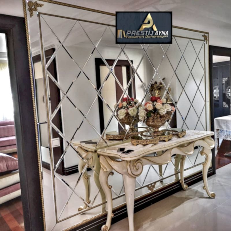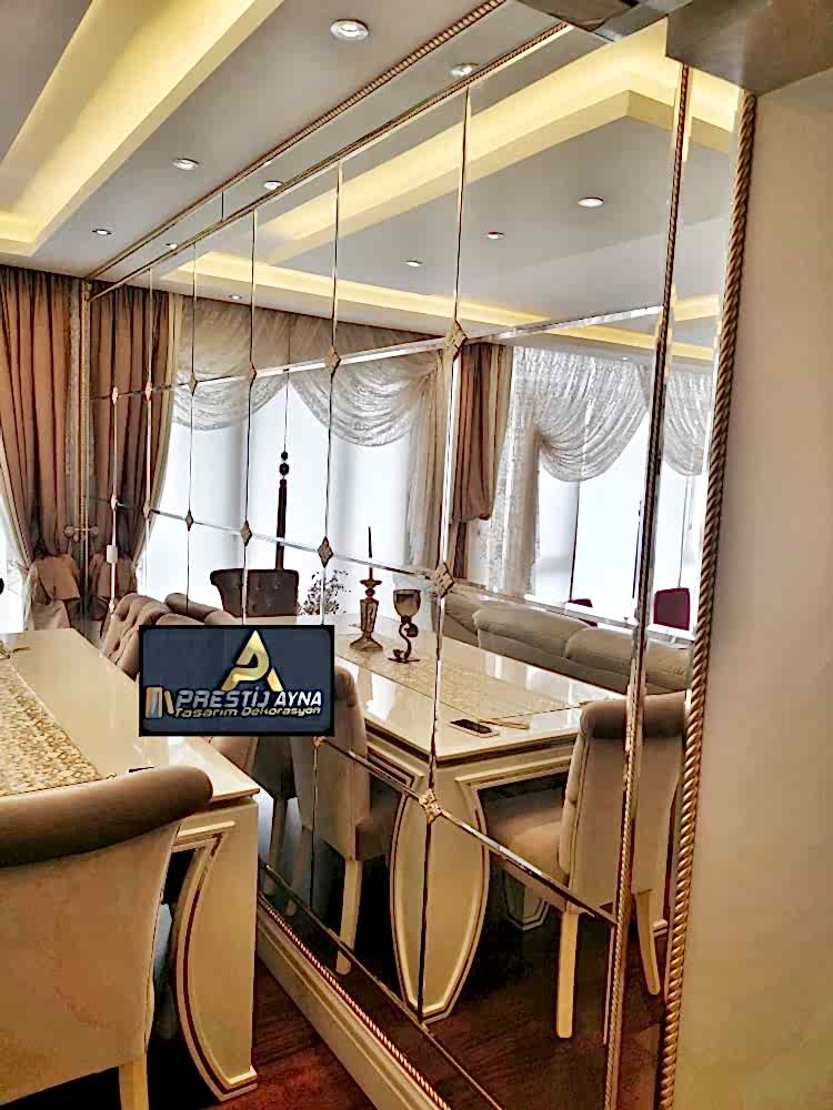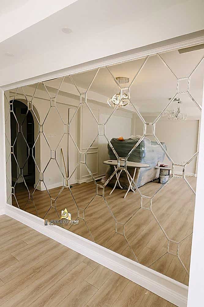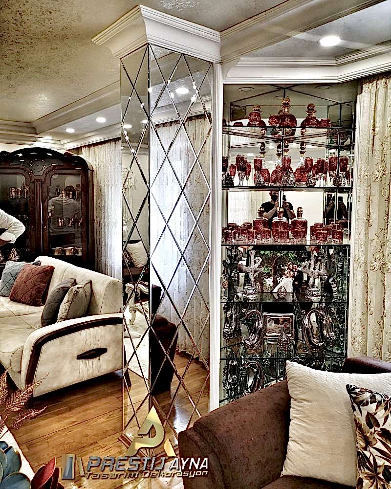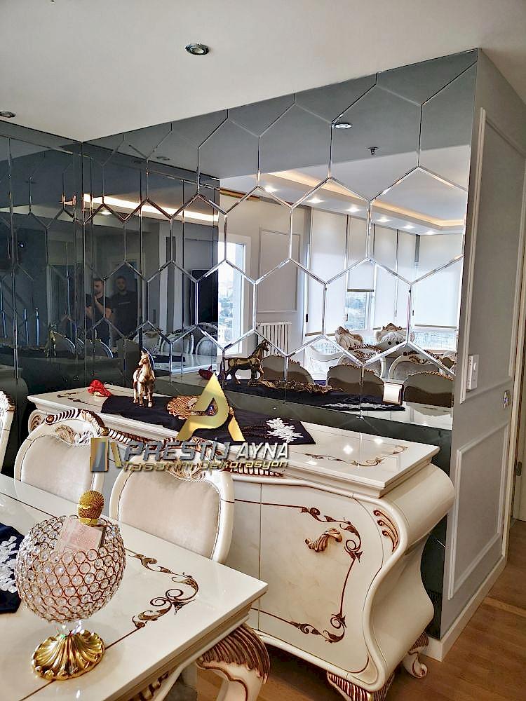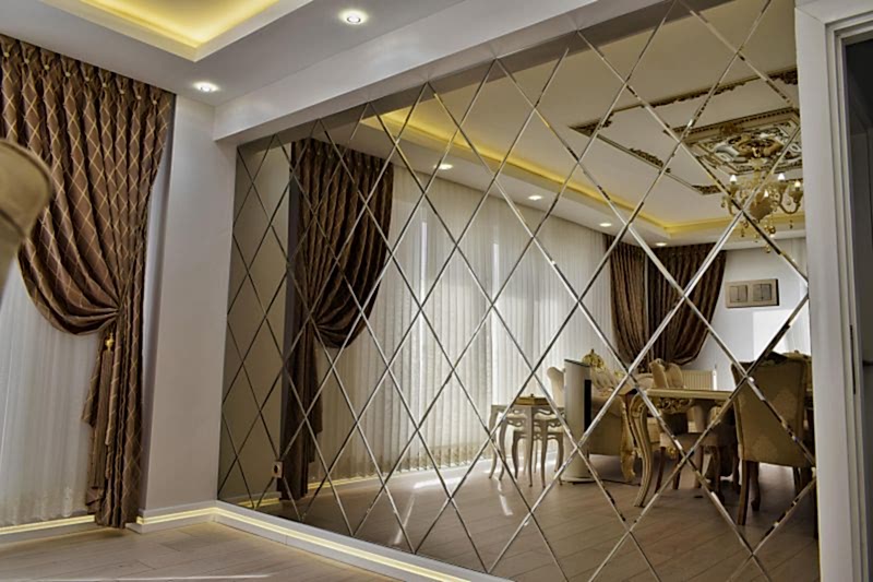 Azerbaycan tarzı aynalarla duvara baklava desenli modeller yapıştırarak şık bir görünüm elde edebilir ve asma tavanınızı da dikkate alabilirsiniz.baklava aynaAzerbaycan'da özel yapım ayna ile tüm alanlara derinlik ve ferahlık katılabilirsiniz.