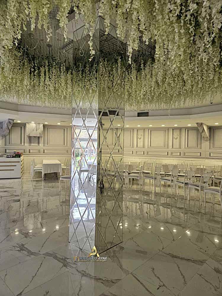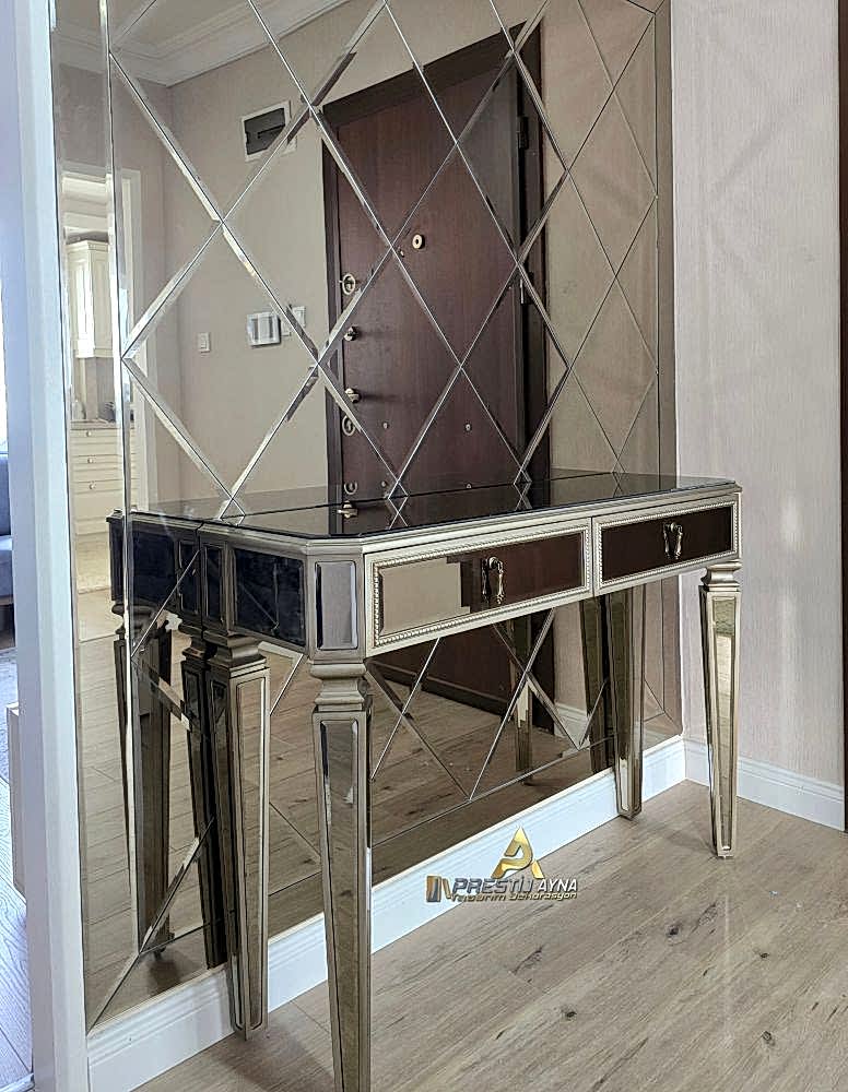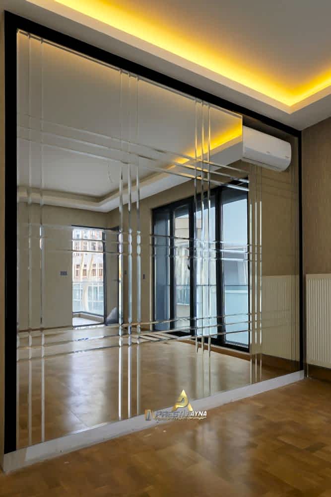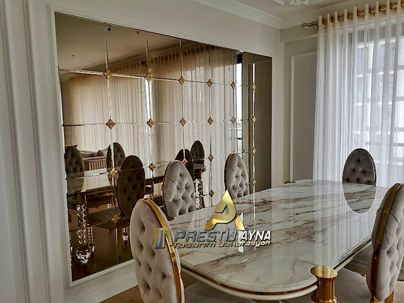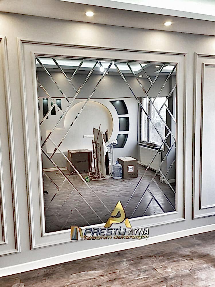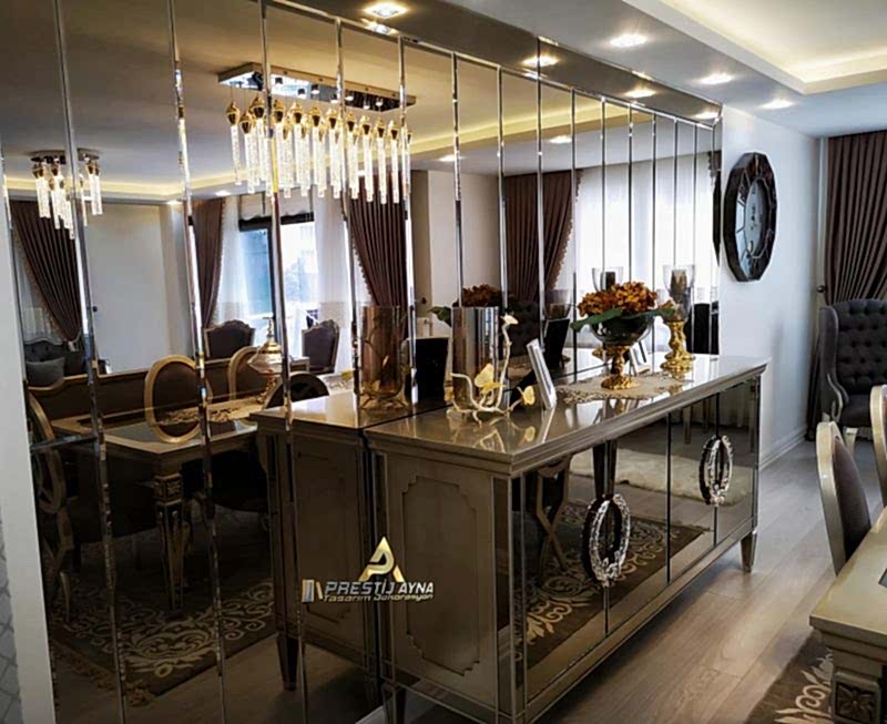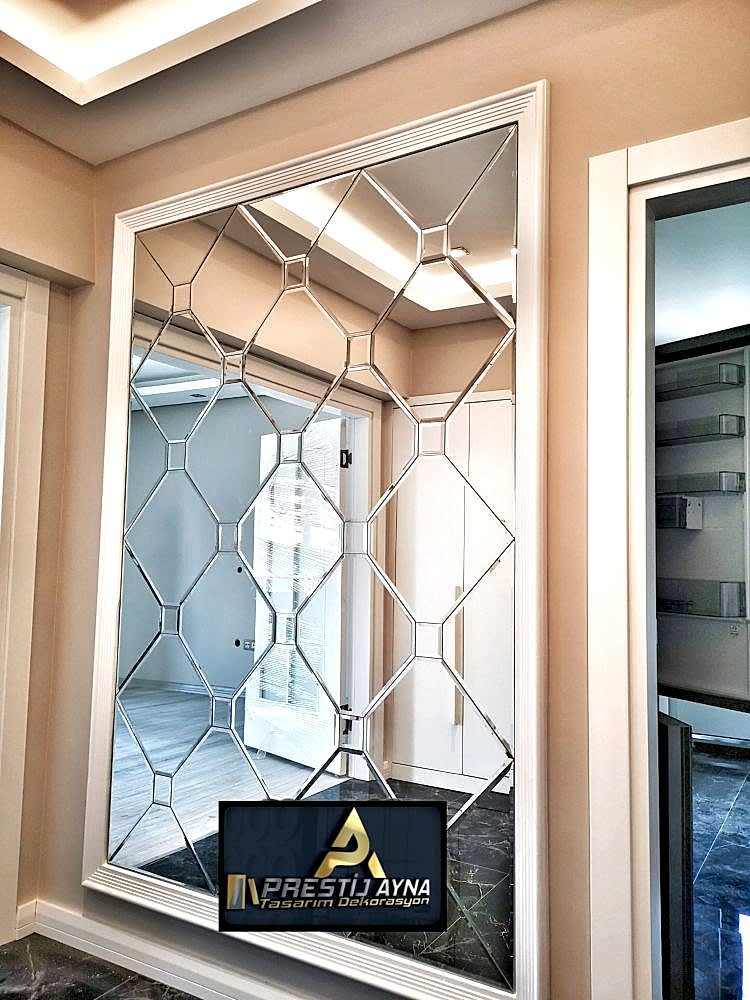 Azerbaycan tarzı aynalarla duvara baklava desenli modeller yapıştırarak şık bir görünüm elde edebilir ve asma tavanınızı da dikkate alabilirsiniz.baklava aynaAzerbaycan'da özel yapım ayna ile tüm alanlara derinlik ve ferahlık katılabilirsiniz.